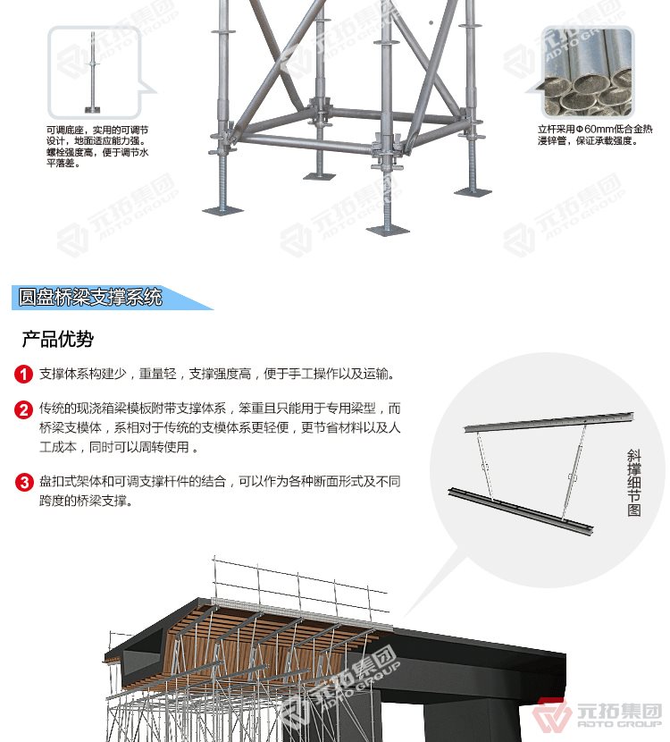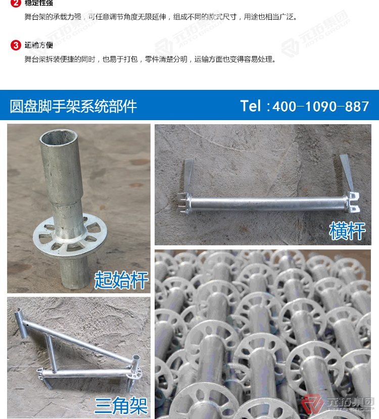 腳手架批發(fā)找元拓,天津和順昌是元拓集團(tuán)天津工廠直銷盤式腳手架,圓盤式腳手架具有基本構(gòu)件少、架設(shè)及拆卸作業(yè)方便、施工工效高、承載力強(qiáng)等特點(diǎn),被廣泛應(yīng)用于橋梁、隧道、電力、石化、造船、鐵路、機(jī)場(chǎng)、碼頭等工業(yè)及民用建筑的工程領(lǐng)域。相對(duì)于鋼管扣件式腳手架和碗扣式腳手架,圓盤腳手架有不可替代的優(yōu)勢(shì)。