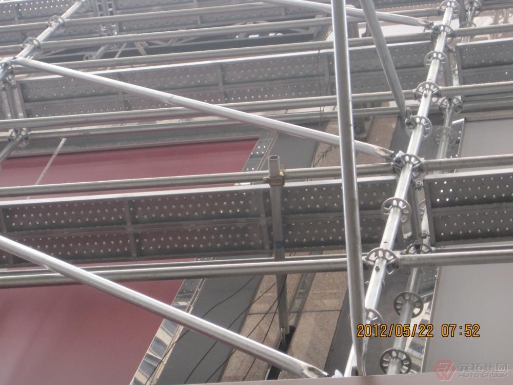 圓盤(pán)式腳手架主要有以下優(yōu)點(diǎn):系統(tǒng)牢固,機(jī)構(gòu)穩(wěn)定,橫桿接頭和豎桿結(jié)合得牢固,且接觸面大,施工中更安全;構(gòu)件種類少,安裝和拆卸快速而簡(jiǎn)單,效率為普通腳手架的4~6倍。