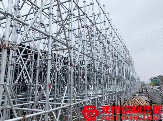 由于盤扣腳手架架體結(jié)構(gòu)的優(yōu)越性,讓它在現(xiàn)代工程中,特別是高空作業(yè),比起傳統(tǒng)的腳手架有著更加安全的保護作用。該腳手架材料是高強度Q345B,這種低碳合金有著更好的強度性能,極限載荷大,可以說腳手架材料好,所以才能凸顯它的優(yōu)越性。