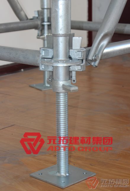 1、盤(pán)式腳手架搭設(shè)前,對(duì)基礎(chǔ)平面進(jìn)行檢查,采取拉線的方式進(jìn)行找平保證腳手架下托在同水平面之內(nèi),保證腳手架的受力均勻,施工中保證各個(gè)連接點(diǎn)的緊密安放,嚴(yán)禁虛接的情況出現(xiàn)。