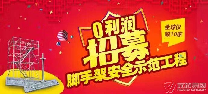 為迎接元拓成立20周年,元拓首屆“腳手架安全示范工程”施工企業(yè)招募活動正式啟動,現(xiàn)向全球征集10家具有壹級(含)以上施工資質(zhì)的施工單位,打造“零利潤,腳手架安全示范工程“,申報(bào)成功的施工單位將免費(fèi)獲贈價(jià)值10萬元的工程物資產(chǎn)品!申報(bào)電話:400-1090-877。詳情請戳http://m.adtomall.cn/SpecialList/201703/index.html